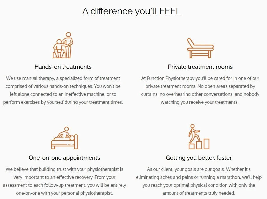 management, TMJ therapy, personal training, and more! Everyappointment at Function Physiotherapy is 1-on-1 in a private treatment room with your dedicated physiotherapist - no assistants, no double booking. Our focus on personalized care is what truly sets us apart.